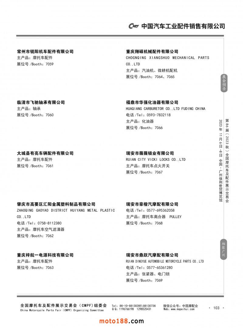 內(nèi)80-176 第85屆(2023春)全國摩托車及配件展示交易會(huì)-重慶站參展企業(yè)信息