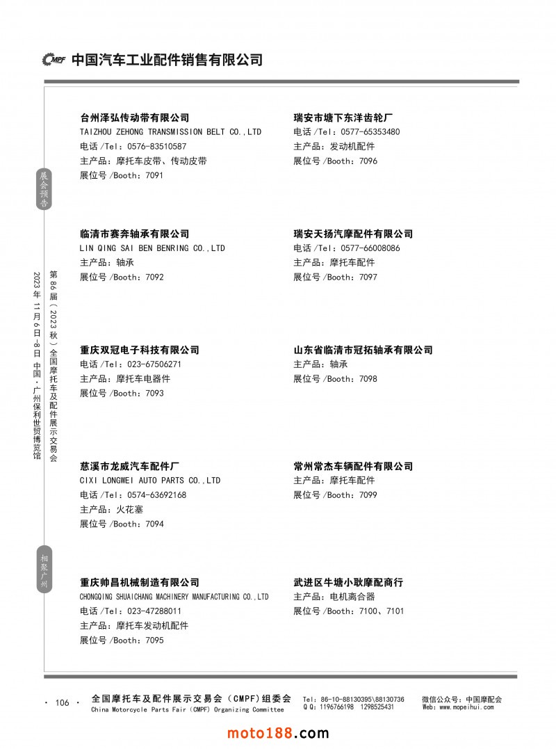 內(nèi)80-176 第85屆(2023春)全國(guó)摩托車及配件展示交易會(huì)-重慶站參展企業(yè)信息