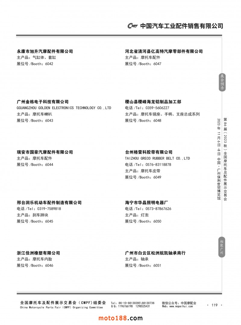 內80-176 第85屆(2023春)全國摩托車及配件展示交易會-重慶站參展企業(yè)信息