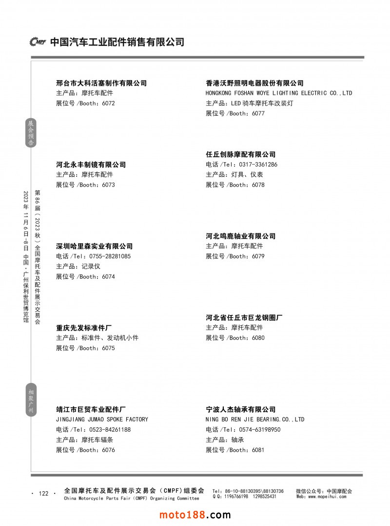 內(nèi)80-176 第85屆(2023春)全國(guó)摩托車及配件展示交易會(huì)-重慶站參展企業(yè)信息
