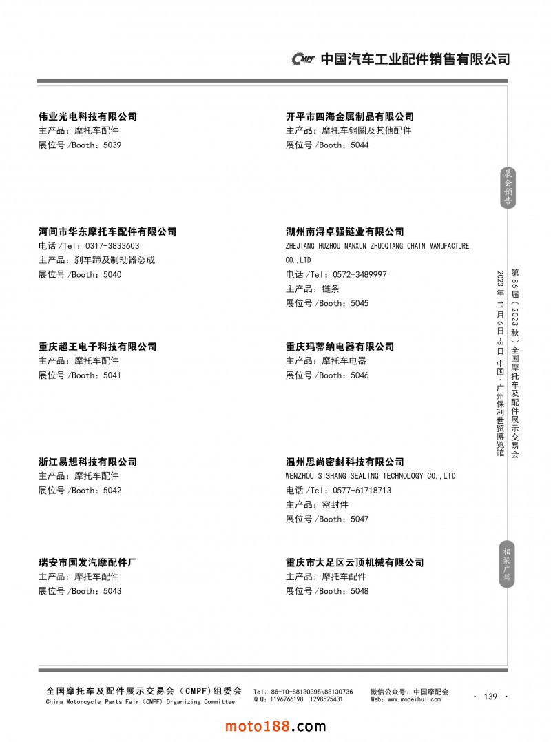 內(nèi)80-176 第85屆(2023春)全國(guó)摩托車及配件展示交易會(huì)-重慶站參展企業(yè)信息