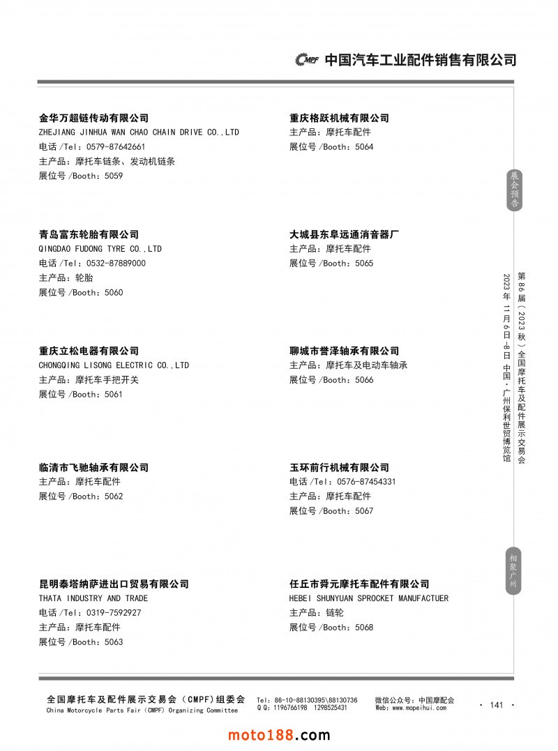 內(nèi)80-176 第85屆(2023春)全國摩托車及配件展示交易會-重慶站參展企業(yè)信息