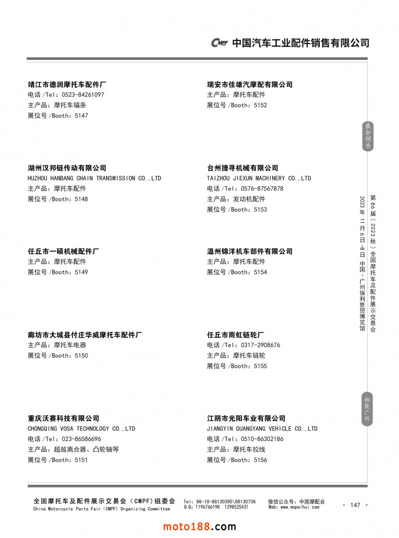 內(nèi)80-176 第85屆(2023春)全國摩托車及配件展示交易會-重慶站參展企業(yè)信息