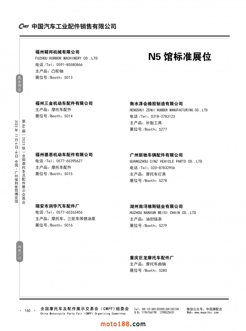 內(nèi)80-176 第85屆(2023春)全國(guó)摩托車及配件展示交易會(huì)-重慶站參展企業(yè)信息