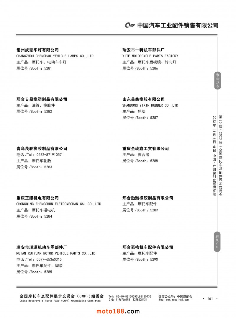 內(nèi)80-176 第85屆(2023春)全國摩托車及配件展示交易會-重慶站參展企業(yè)信息