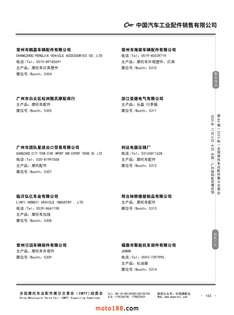 內(nèi)80-176 第85屆(2023春)全國摩托車及配件展示交易會-重慶站參展企業(yè)信息