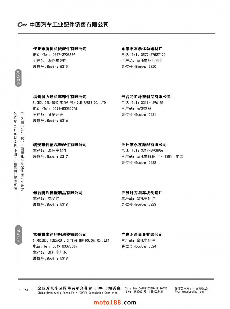 內80-176 第85屆(2023春)全國摩托車及配件展示交易會-重慶站參展企業(yè)信息