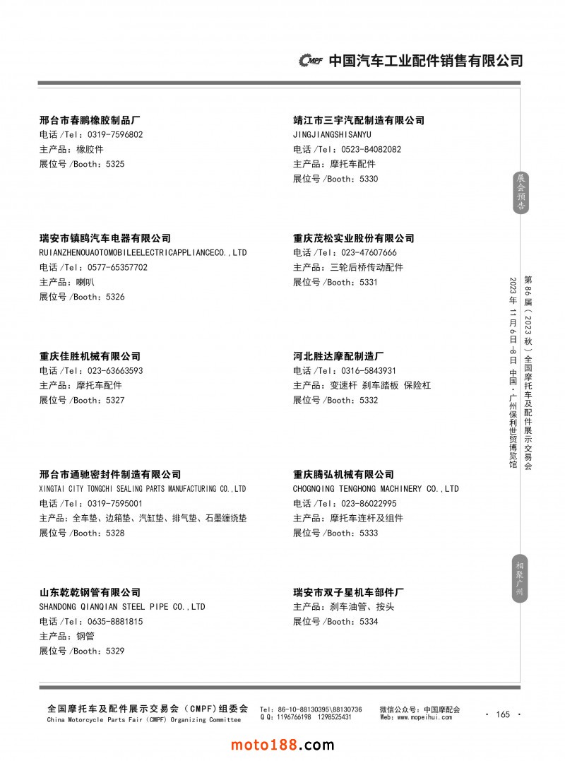 內(nèi)80-176 第85屆(2023春)全國(guó)摩托車及配件展示交易會(huì)-重慶站參展企業(yè)信息