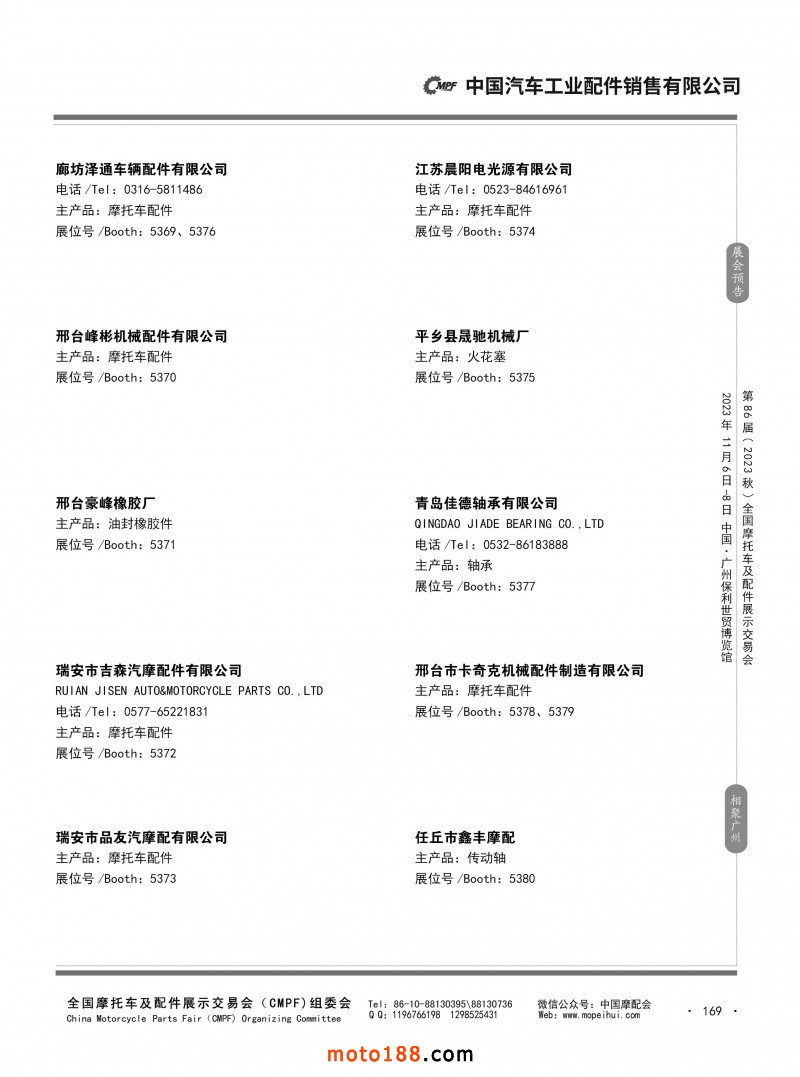 內80-176 第85屆(2023春)全國摩托車及配件展示交易會-重慶站參展企業(yè)信息