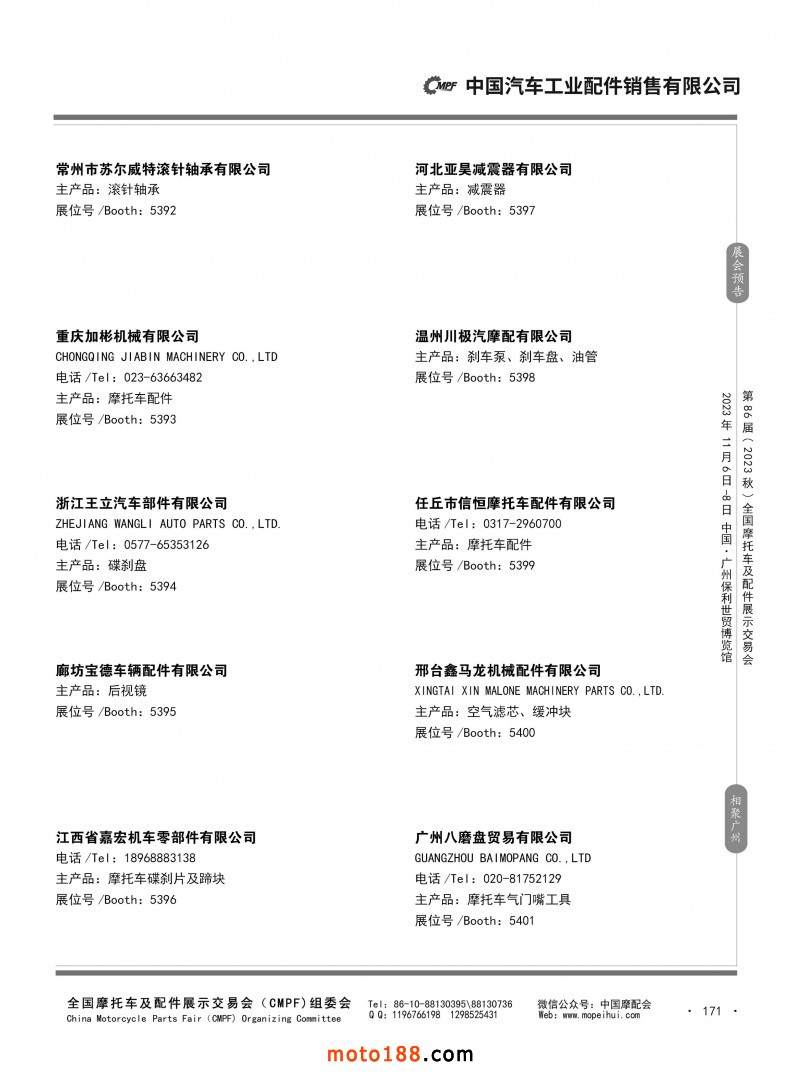 內(nèi)80-176 第85屆(2023春)全國(guó)摩托車(chē)及配件展示交易會(huì)-重慶站參展企業(yè)信息