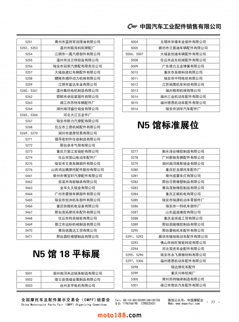 內(nèi)67-79 第85屆(2023春)全國摩托車及配件展示交易會-重慶站參展單位名錄