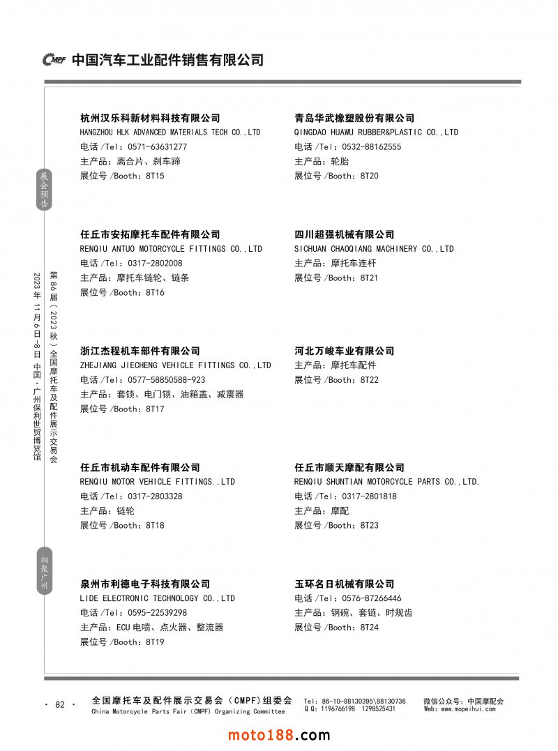 內(nèi)80-176 第85屆(2023春)全國摩托車及配件展示交易會-重慶站參展企業(yè)信息
