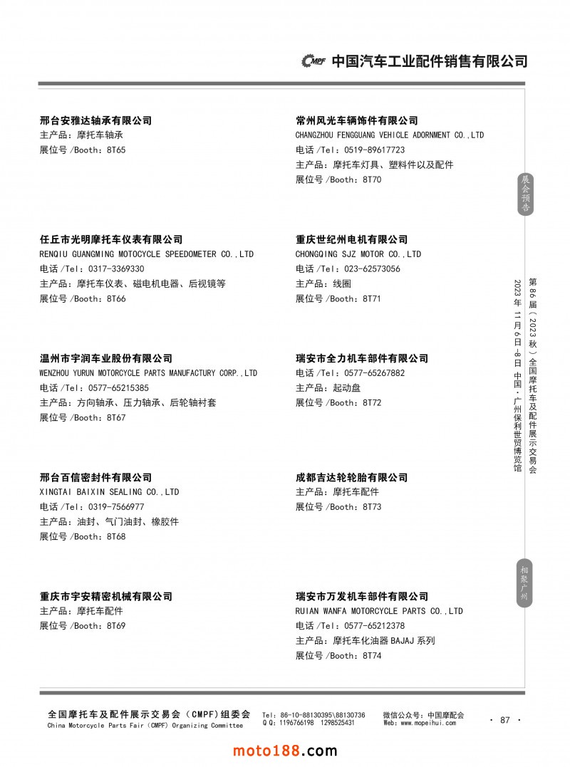 內(nèi)80-176 第85屆(2023春)全國摩托車及配件展示交易會-重慶站參展企業(yè)信息