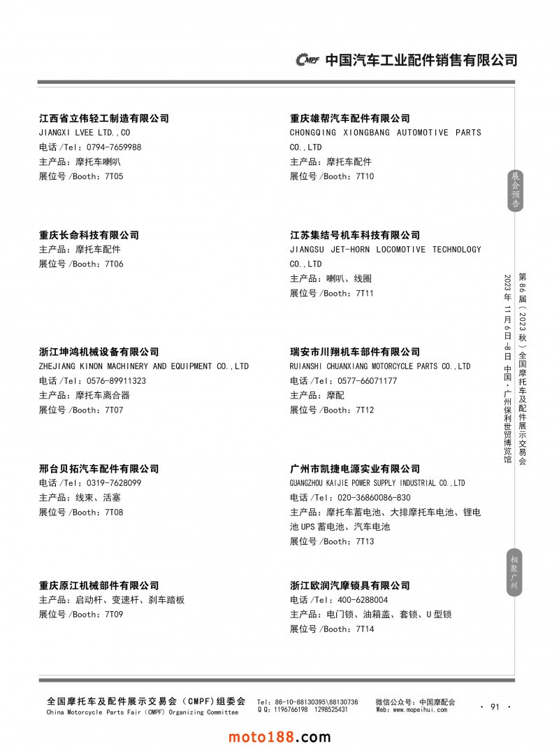 內(nèi)80-176 第85屆(2023春)全國摩托車及配件展示交易會-重慶站參展企業(yè)信息