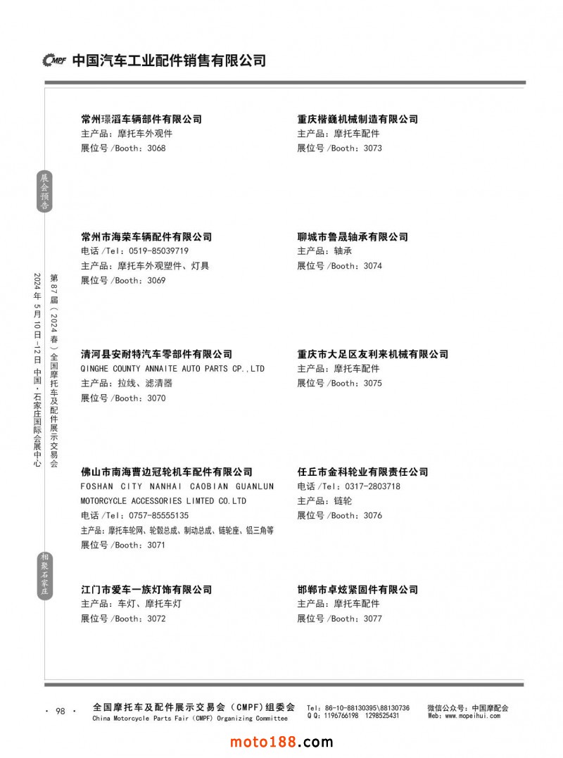 第86屆(2023秋)全國摩托車及配件展示交易會-廣州站參展企業(yè)信息
