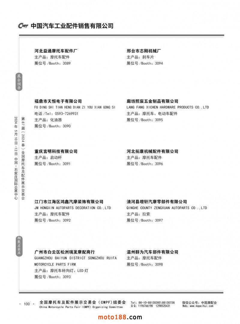 第86屆(2023秋)全國(guó)摩托車(chē)及配件展示交易會(huì)-廣州站參展企業(yè)信息