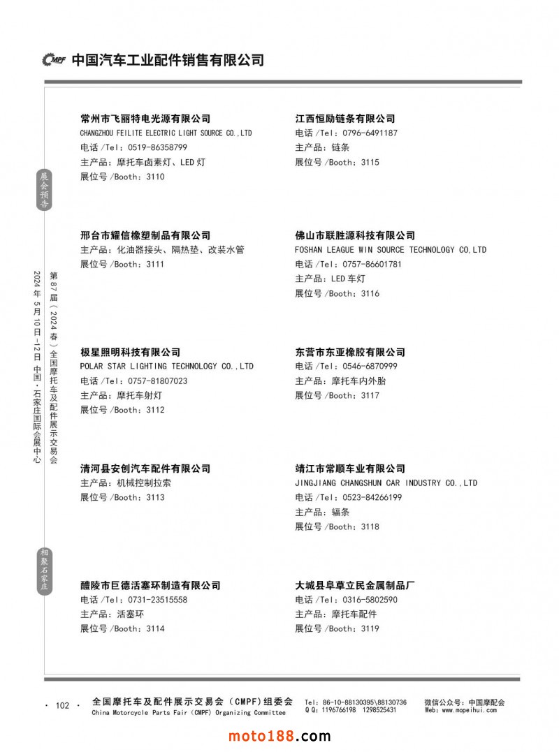第86屆(2023秋)全國摩托車及配件展示交易會-廣州站參展企業(yè)信息