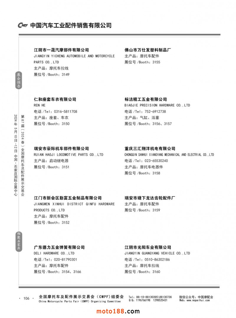 第86屆(2023秋)全國摩托車及配件展示交易會-廣州站參展企業(yè)信息
