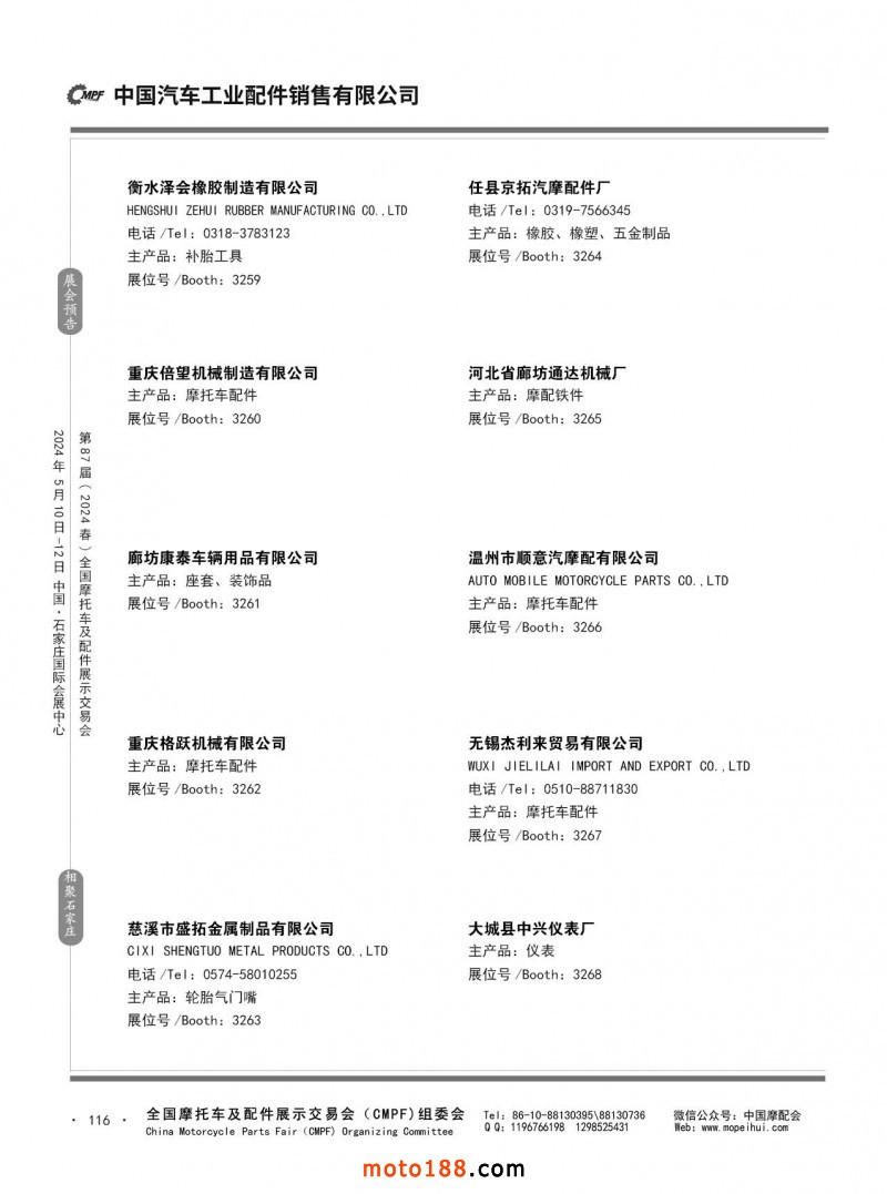 第86屆(2023秋)全國(guó)摩托車(chē)及配件展示交易會(huì)-廣州站參展企業(yè)信息