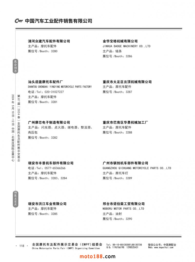 第86屆(2023秋)全國(guó)摩托車及配件展示交易會(huì)-廣州站參展企業(yè)信息