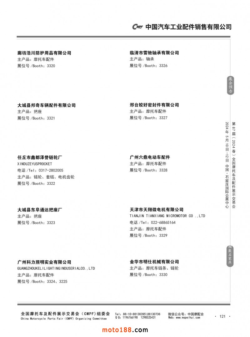 第86屆(2023秋)全國(guó)摩托車及配件展示交易會(huì)-廣州站參展企業(yè)信息