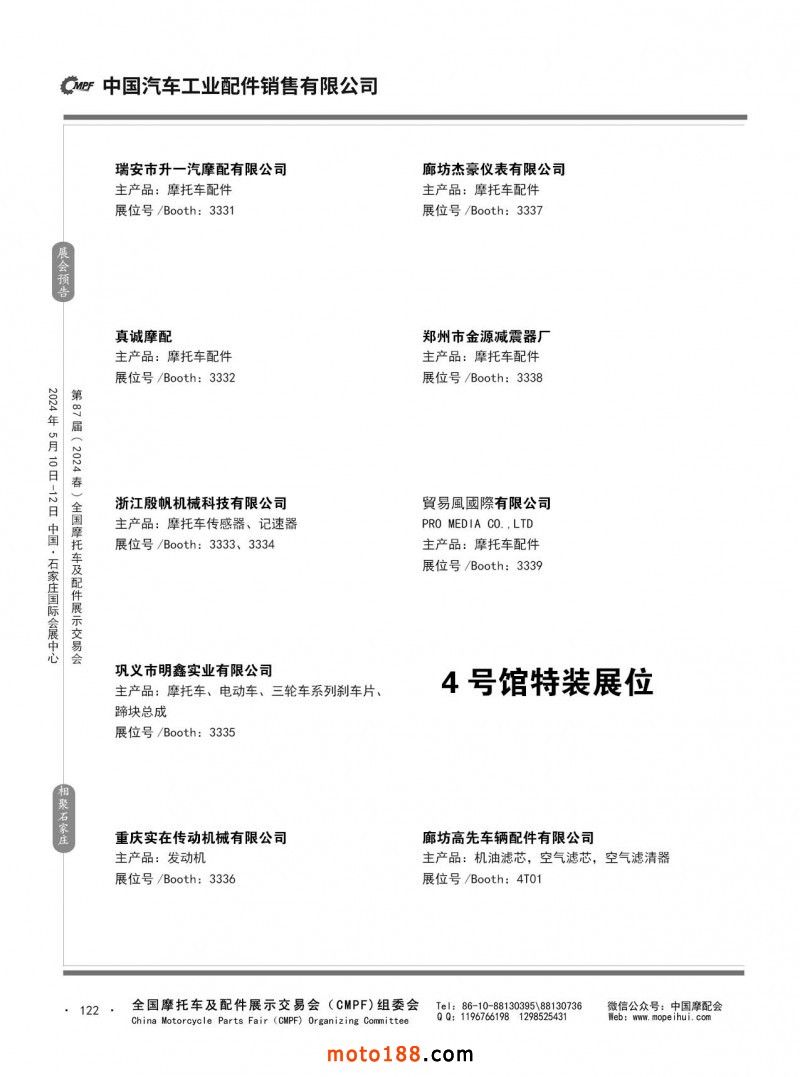 第86屆(2023秋)全國摩托車及配件展示交易會-廣州站參展企業(yè)信息