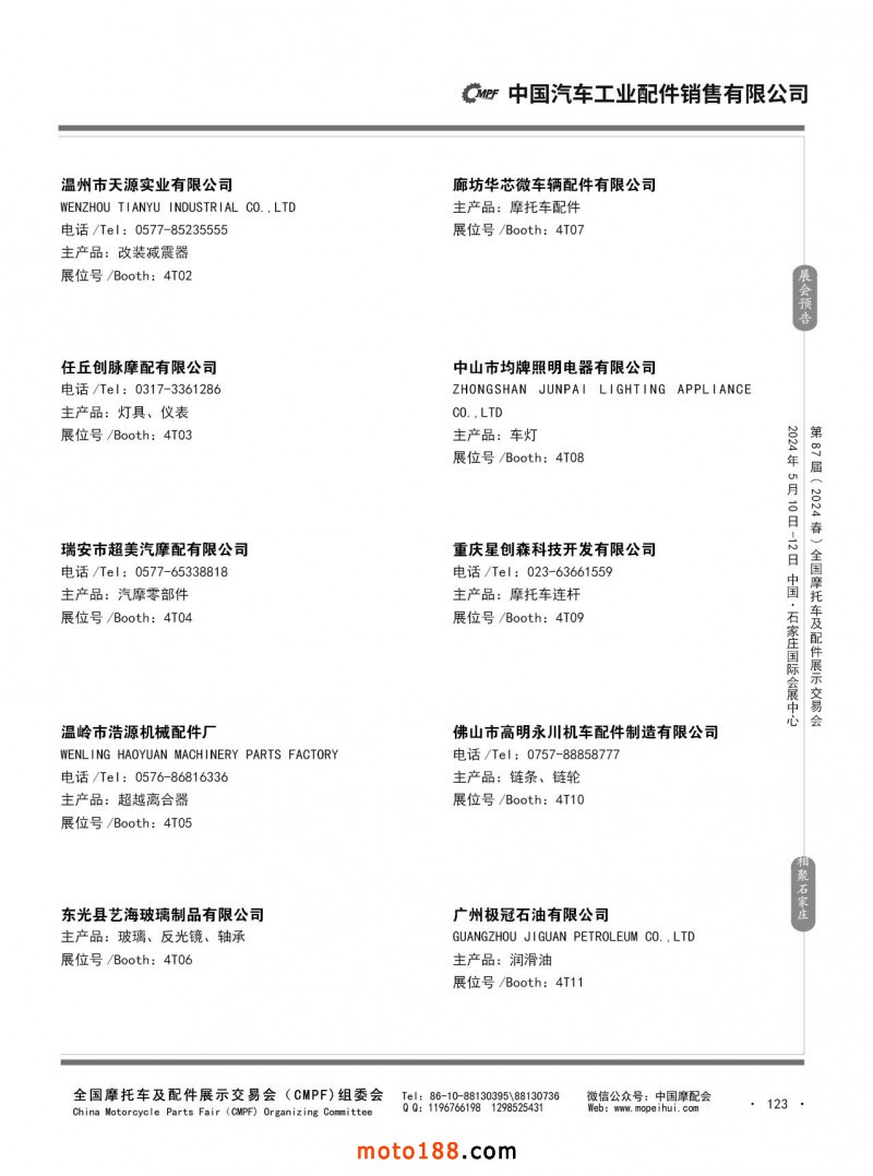 第86屆(2023秋)全國(guó)摩托車及配件展示交易會(huì)-廣州站參展企業(yè)信息