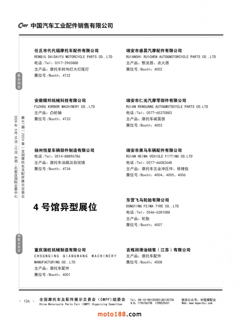 第86屆(2023秋)全國(guó)摩托車(chē)及配件展示交易會(huì)-廣州站參展企業(yè)信息