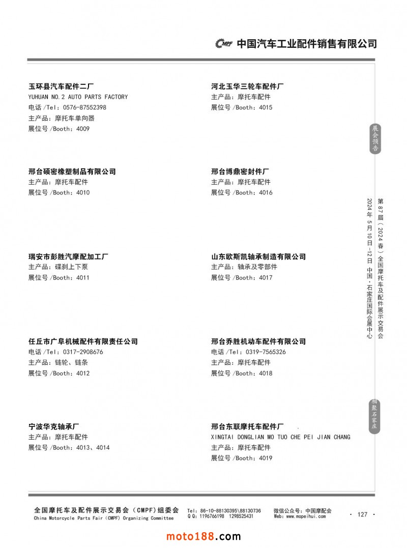 第86屆(2023秋)全國(guó)摩托車(chē)及配件展示交易會(huì)-廣州站參展企業(yè)信息