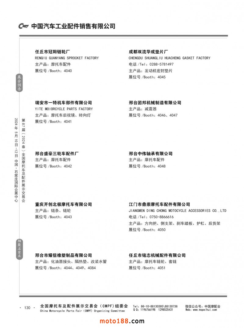 第86屆(2023秋)全國摩托車及配件展示交易會-廣州站參展企業(yè)信息