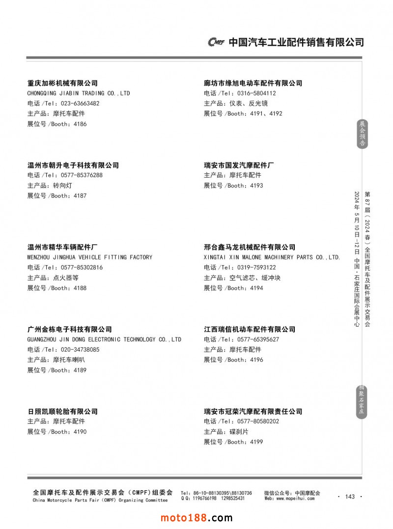 第86屆(2023秋)全國摩托車及配件展示交易會-廣州站參展企業(yè)信息