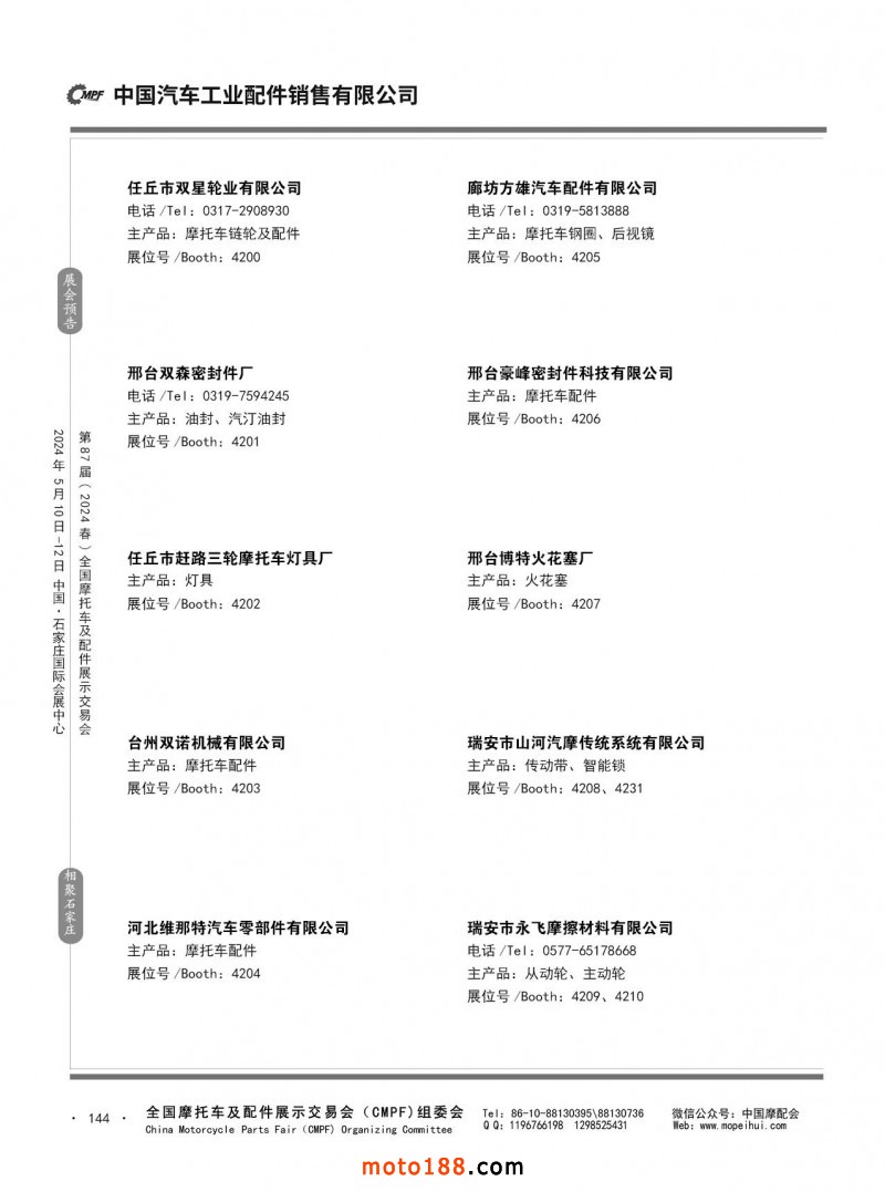 第86屆(2023秋)全國摩托車及配件展示交易會-廣州站參展企業(yè)信息