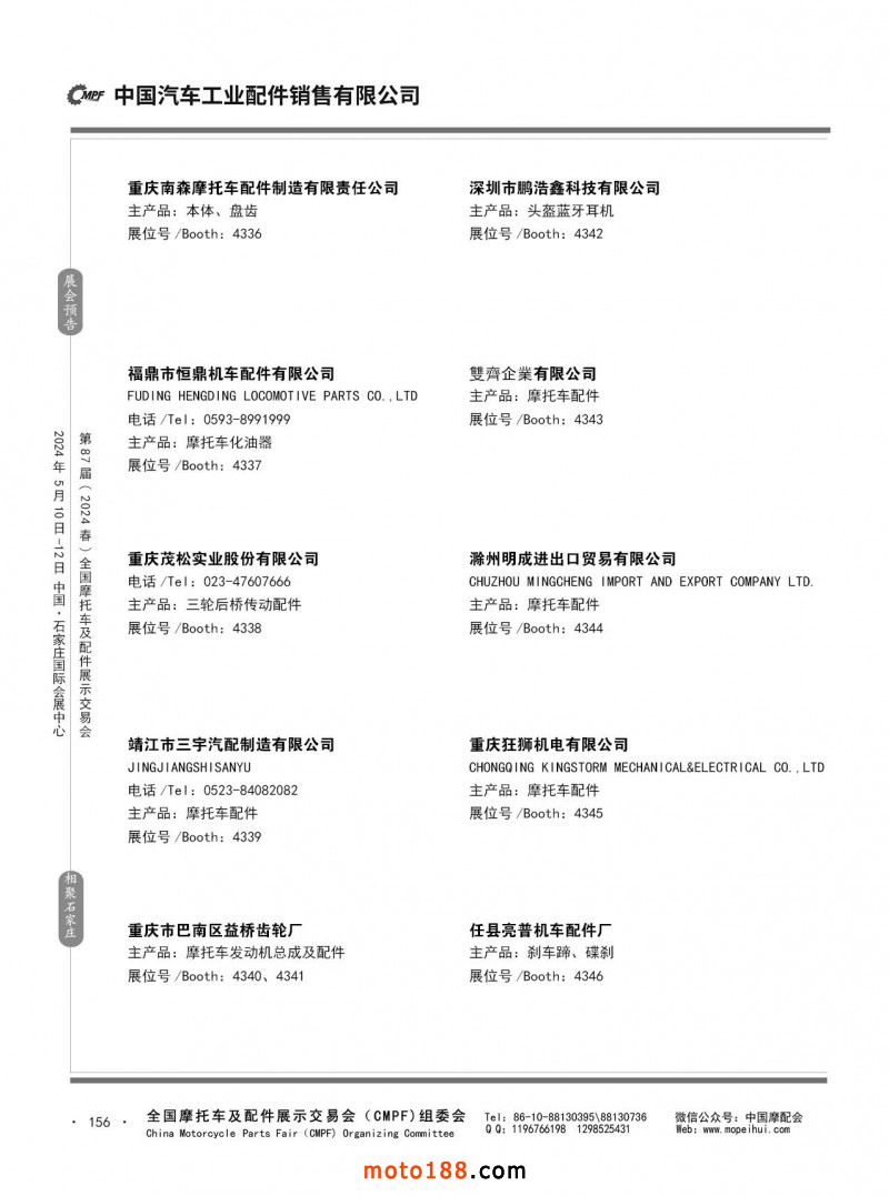 第86屆(2023秋)全國摩托車及配件展示交易會-廣州站參展企業(yè)信息