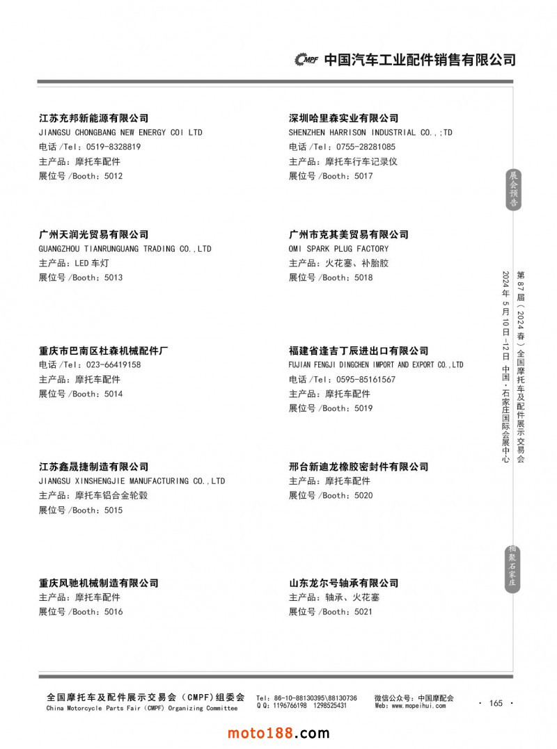 第86屆(2023秋)全國(guó)摩托車及配件展示交易會(huì)-廣州站參展企業(yè)信息