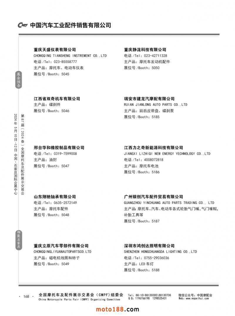 第86屆(2023秋)全國摩托車及配件展示交易會-廣州站參展企業(yè)信息