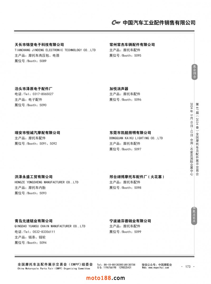 第86屆(2023秋)全國摩托車及配件展示交易會-廣州站參展企業(yè)信息