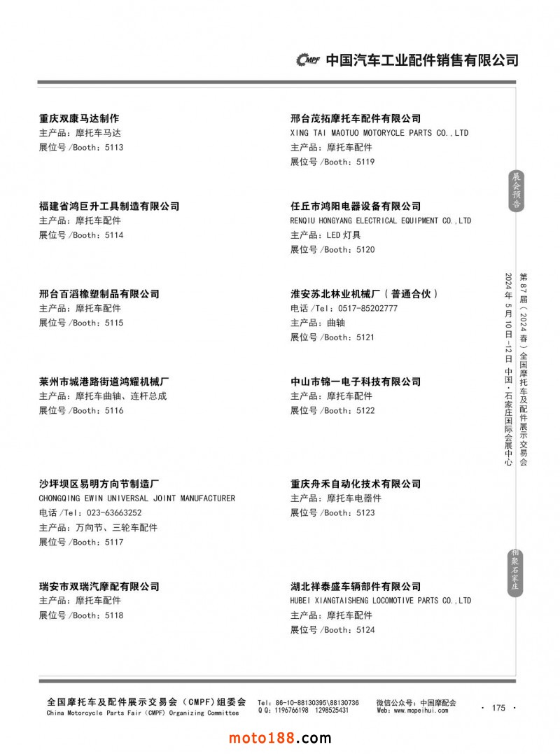 第86屆(2023秋)全國(guó)摩托車(chē)及配件展示交易會(huì)-廣州站參展企業(yè)信息