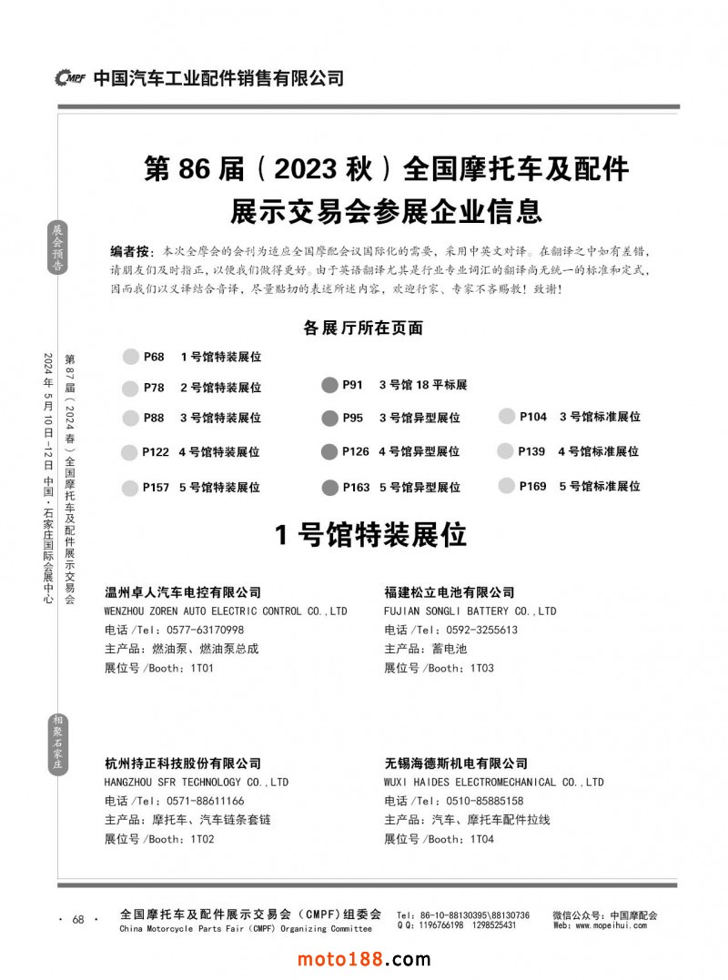 內(nèi)68 第86屆(2023秋)全國摩托車及配件展示交易會-廣州站參展企業(yè)信息