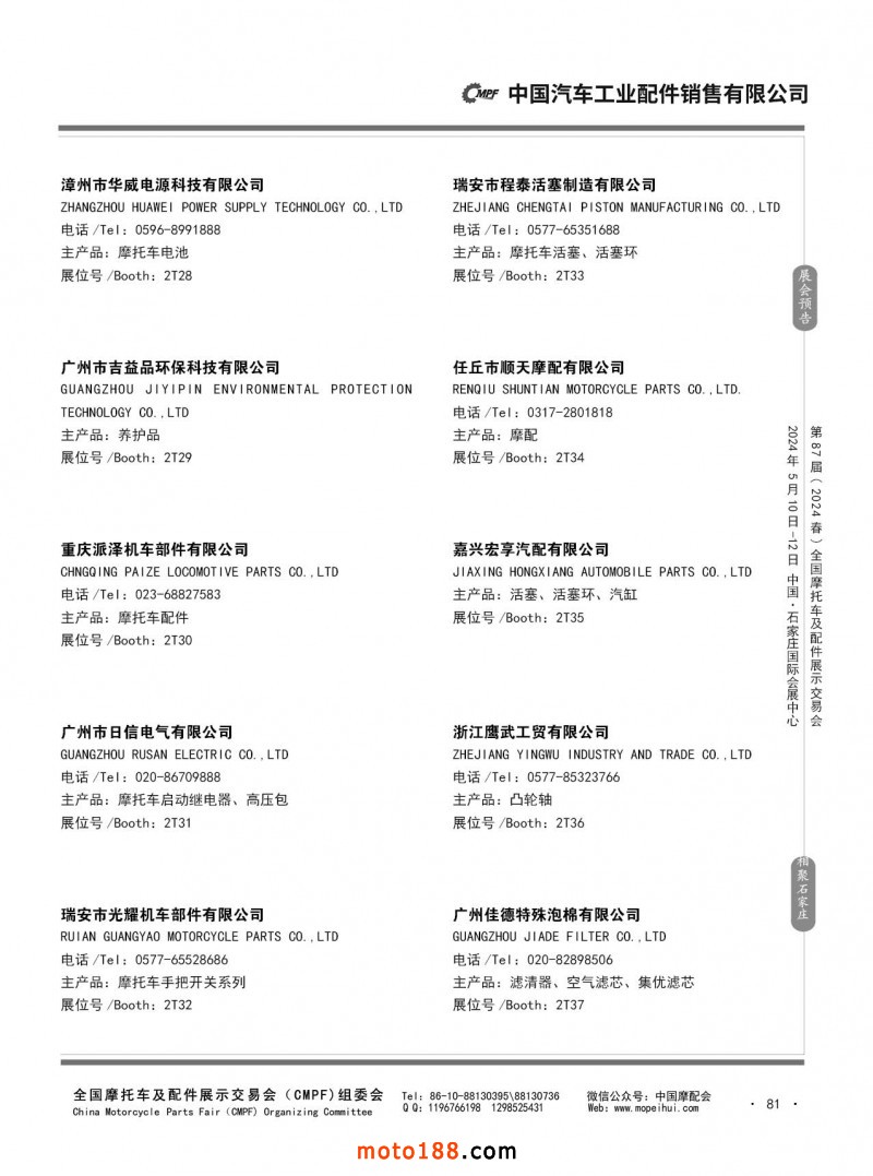 第86屆(2023秋)全國摩托車及配件展示交易會-廣州站參展企業(yè)信息