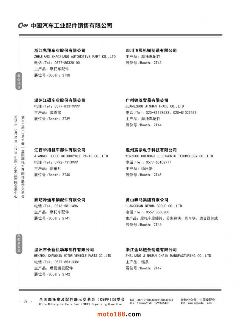 第86屆(2023秋)全國(guó)摩托車及配件展示交易會(huì)-廣州站參展企業(yè)信息