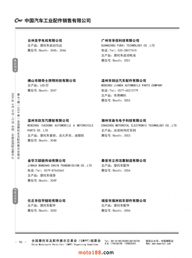 第86屆(2023秋)全國摩托車及配件展示交易會(huì)-廣州站參展企業(yè)信息