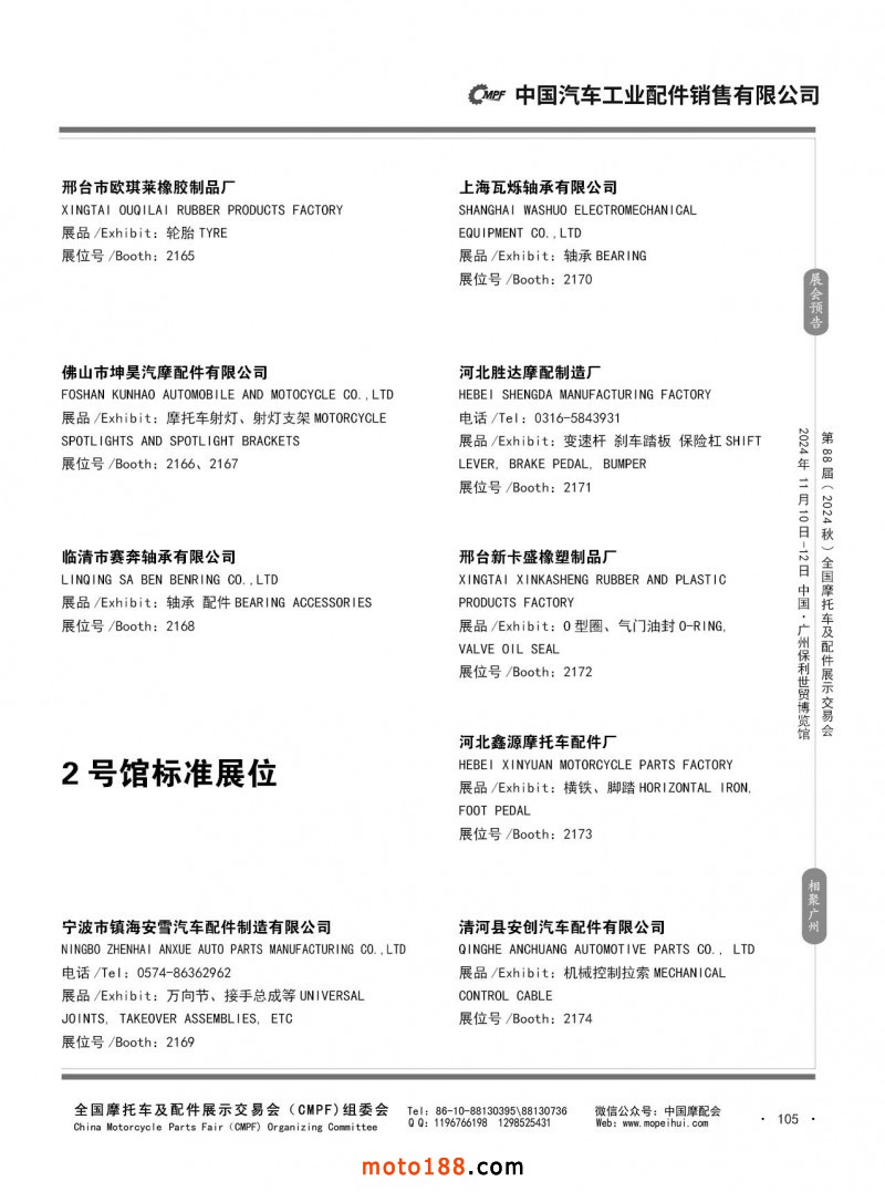 內(nèi)56-132 第87屆(2024春)全國摩托車及配件展示交易會-石家莊站參展企業(yè)信息