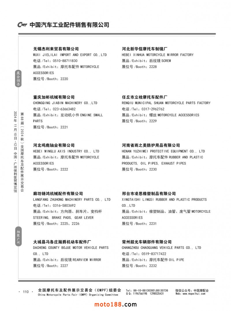 內(nèi)56-132 第87屆(2024春)全國摩托車及配件展示交易會-石家莊站參展企業(yè)信息