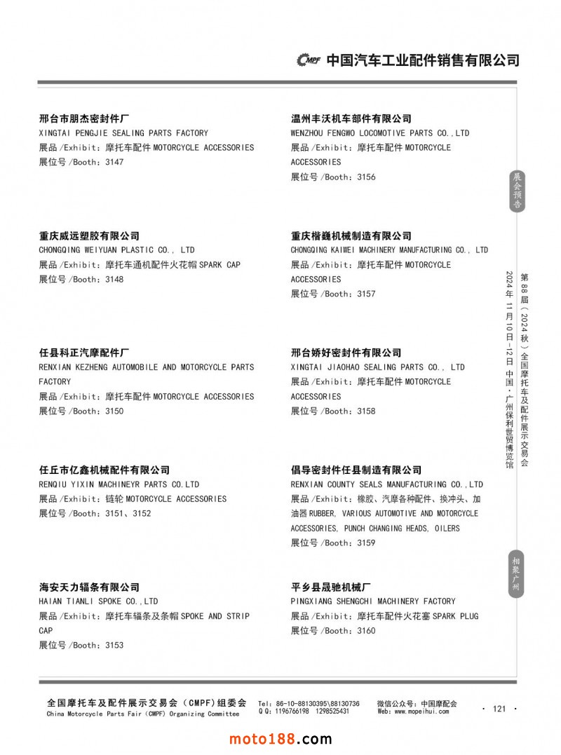 內(nèi)56-132 第87屆(2024春)全國摩托車及配件展示交易會-石家莊站參展企業(yè)信息