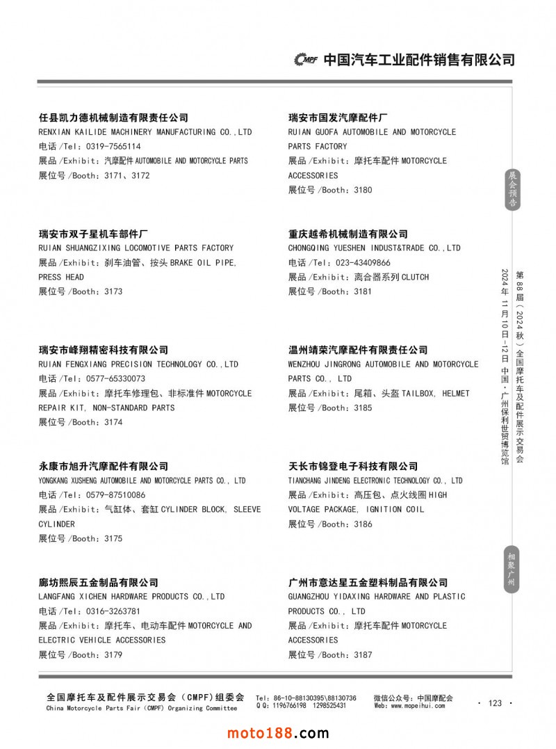內(nèi)56-132 第87屆(2024春)全國(guó)摩托車及配件展示交易會(huì)-石家莊站參展企業(yè)信息