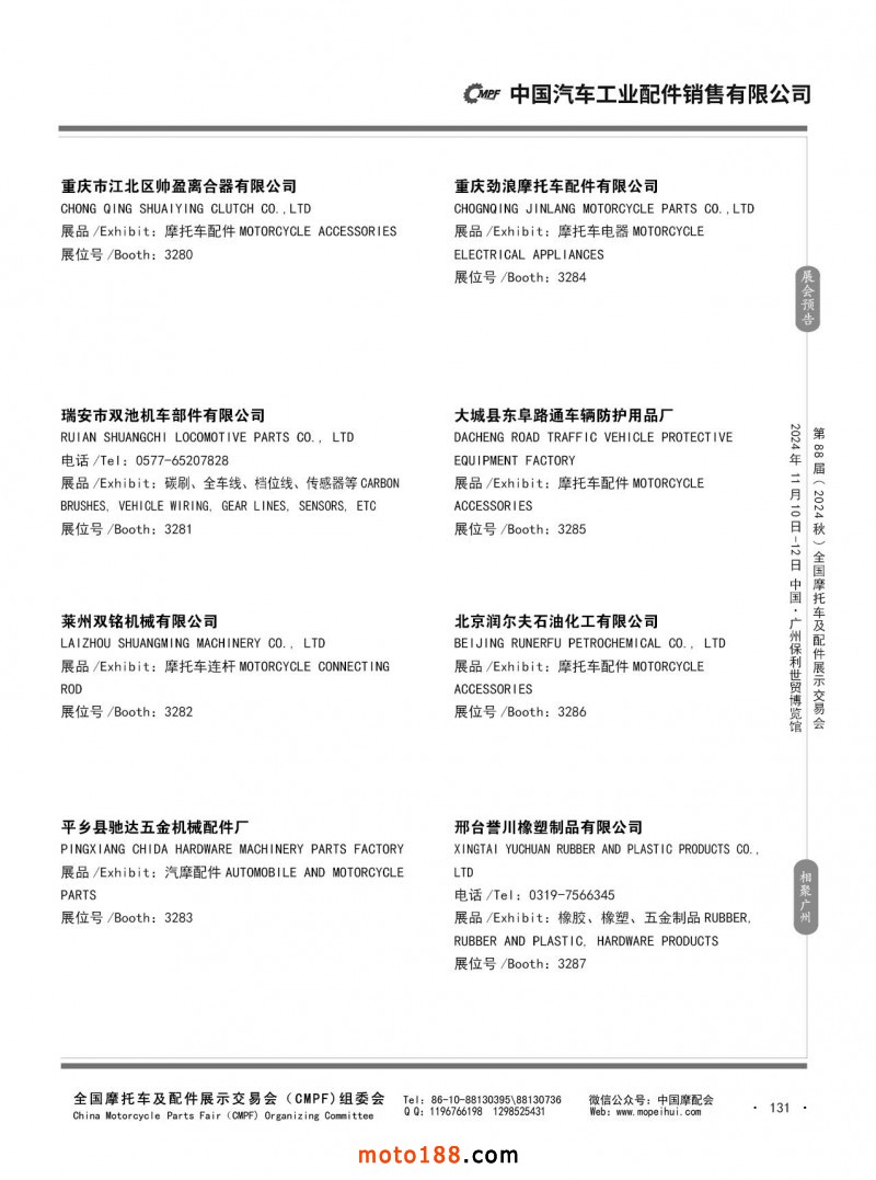 內(nèi)56-132 第87屆(2024春)全國摩托車及配件展示交易會(huì)-石家莊站參展企業(yè)信息