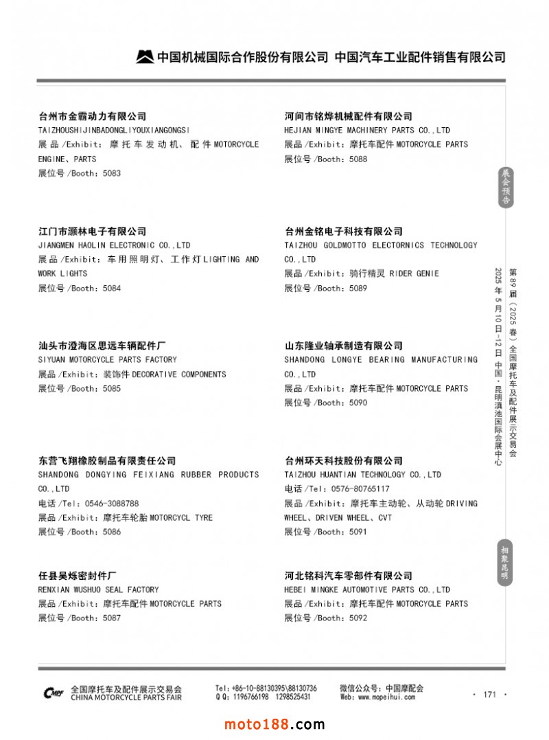 內(nèi)69-188 第88屆(2024秋)全國(guó)摩托車及配件展示交易會(huì)-廣州站參展企業(yè)信息