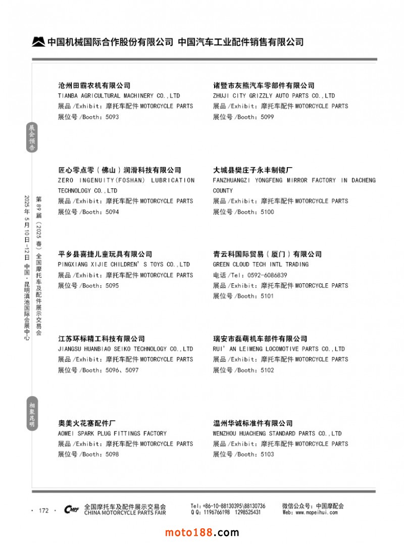 內(nèi)69-188 第88屆(2024秋)全國摩托車及配件展示交易會(huì)-廣州站參展企業(yè)信息
