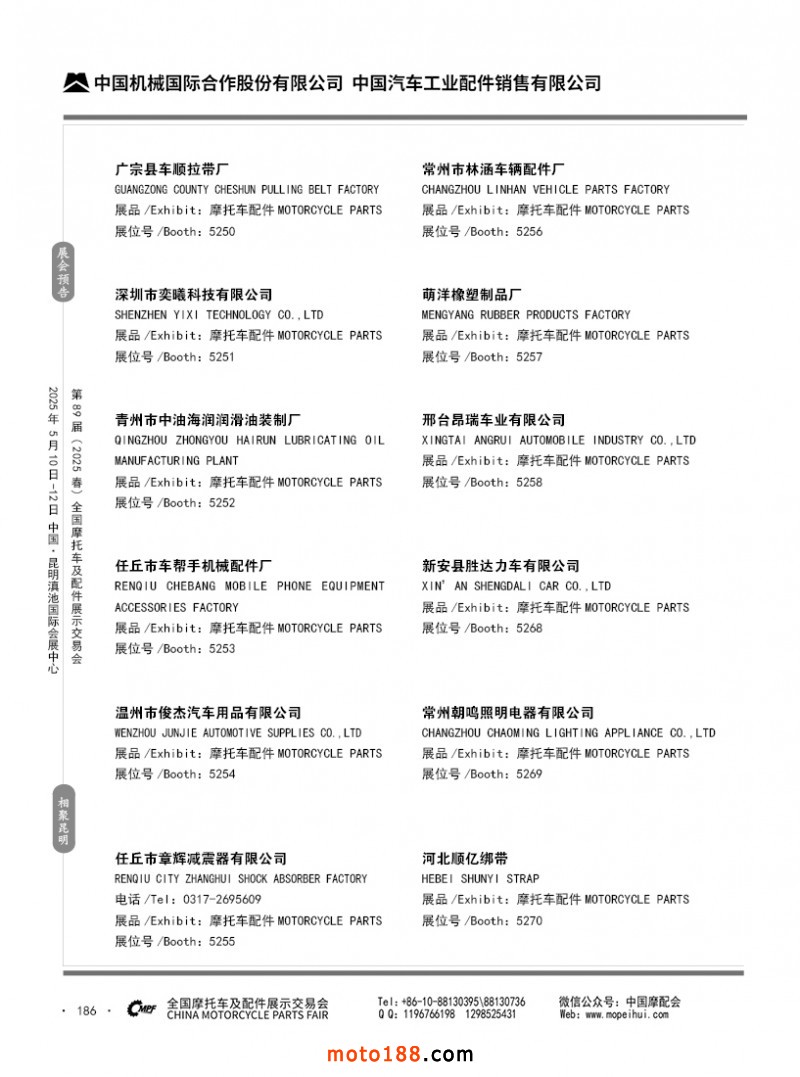 內(nèi)69-188 第88屆(2024秋)全國摩托車及配件展示交易會-廣州站參展企業(yè)信息