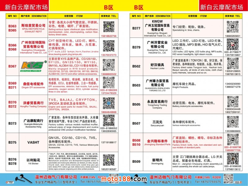 各摩配市場(chǎng)詳細(xì)資料請(qǐng)注冊(cè)我們的VIP會(huì)員咨詢 電話:0515-88436994 QQ:309362965、842467029、1051652573